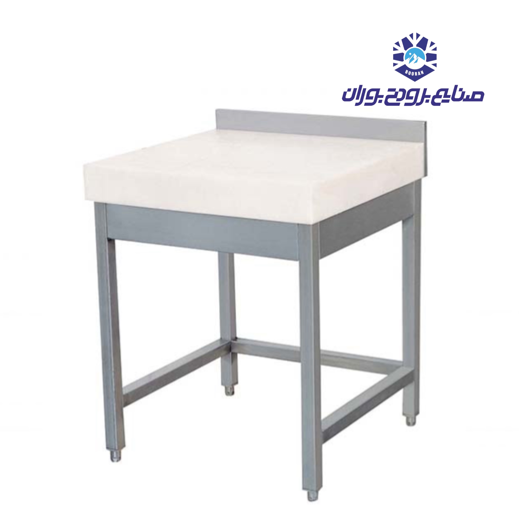 میز کار صنعتی با رویه تخته پلیاتیلن مخصوص خرد کردن گوشت، مرغ و سبزیجات؛ مناسب برای آشپزخانههای صنعتی، قصابی و فستفود.